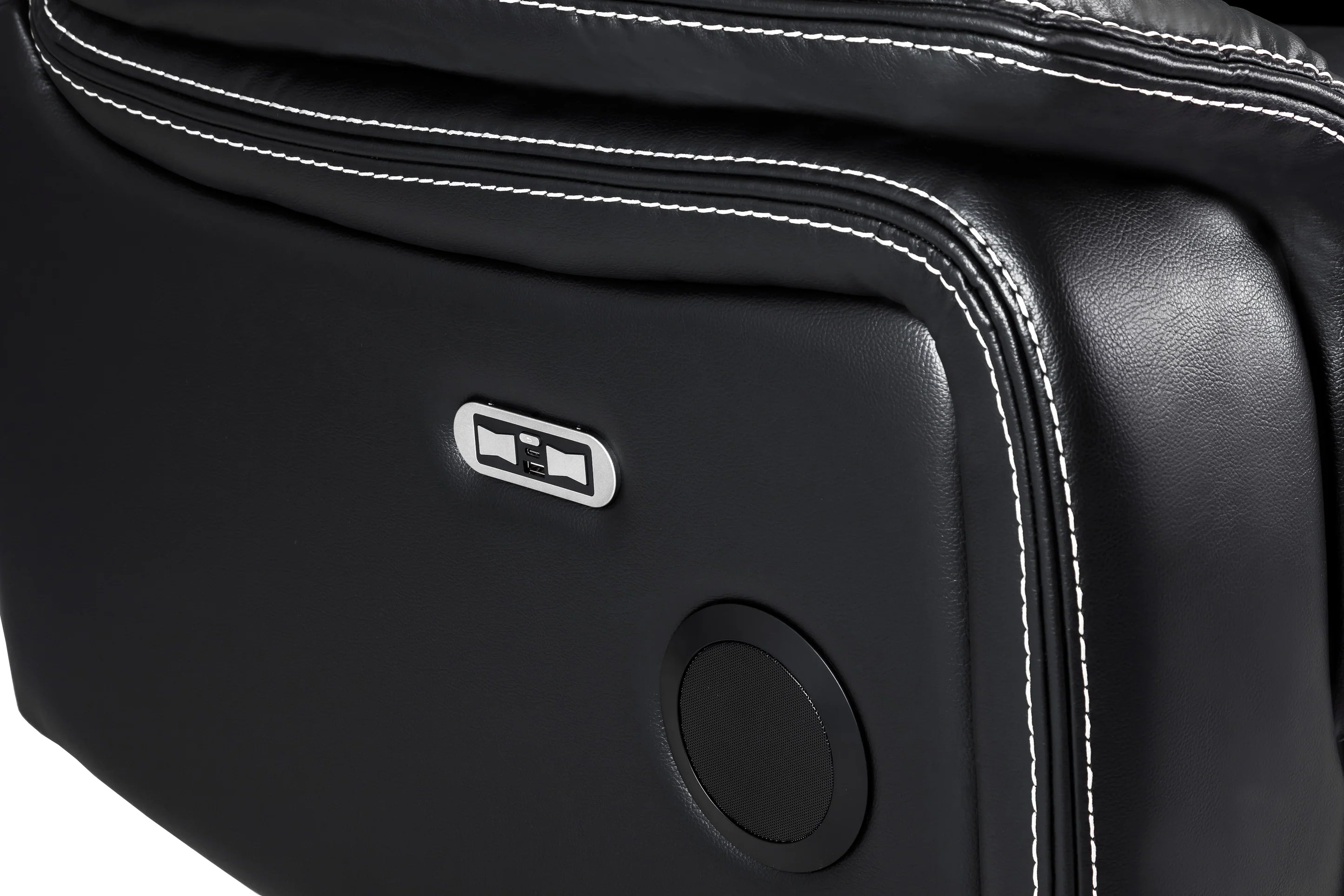 - Highlights: Reclining Function, Built-in Cup Holders, Armrest Storage Compartment, Built-in USB Ports, Leather Material Upholstery