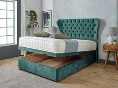 Belgravia Plush Velvet Upholstered Storage Ottoman Bed Frame With Wide Headboard