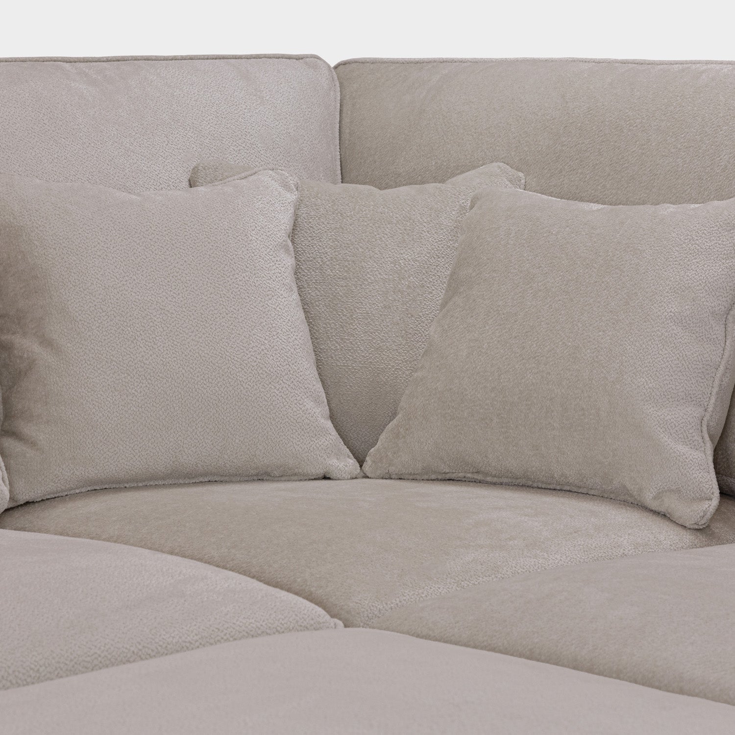 Introducing the Mocha Kiana Modular Corner Sofa: cosy, comfy and crafted to last. Module: Mocha, Corner The Kiana’s modular sofa structure offers absolute design freedom. Fancy changing things up a bit? Manoeuvre the layout of the modules to craft the perfect sofa for your lifestyle, allowing you to recreate your space at a whim and without hassle. Durability doesn’t have to mean compromise on comfort, especially not with the Kiana. Soft-touch chenille upholstery presents the best of both worlds; the tightly woven yarn is strong enough to withstand the trials and tribulations of day-to-day life- but still retains a soft, cloud-like disposition to relax on. The Kiana comes adorned with cosy cushions. Non-slip panels back the Kiana’s (removable) cushions covers to keep your sofa looking immaculate, while extra comfort cushions are scattered across each module - absolute bliss.