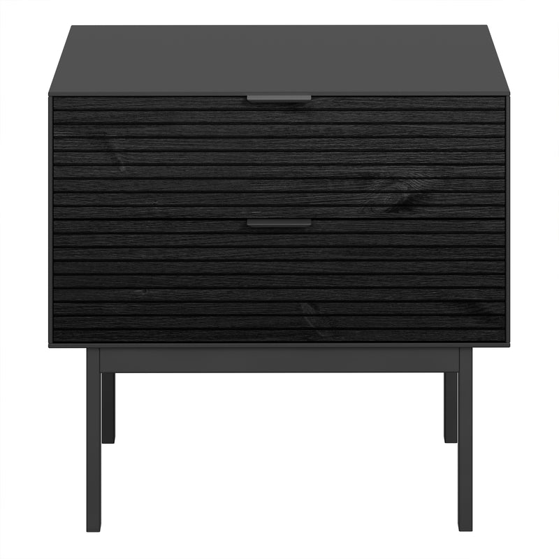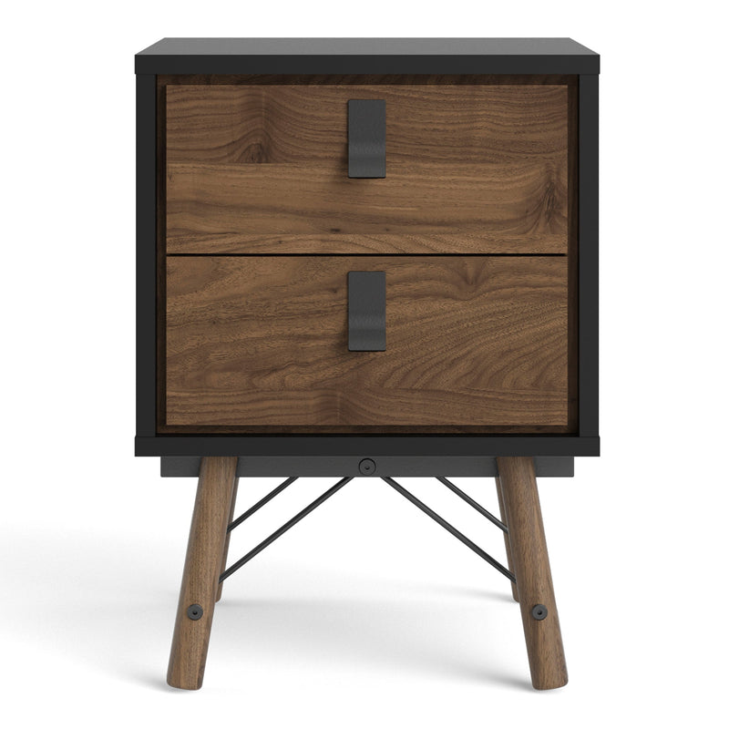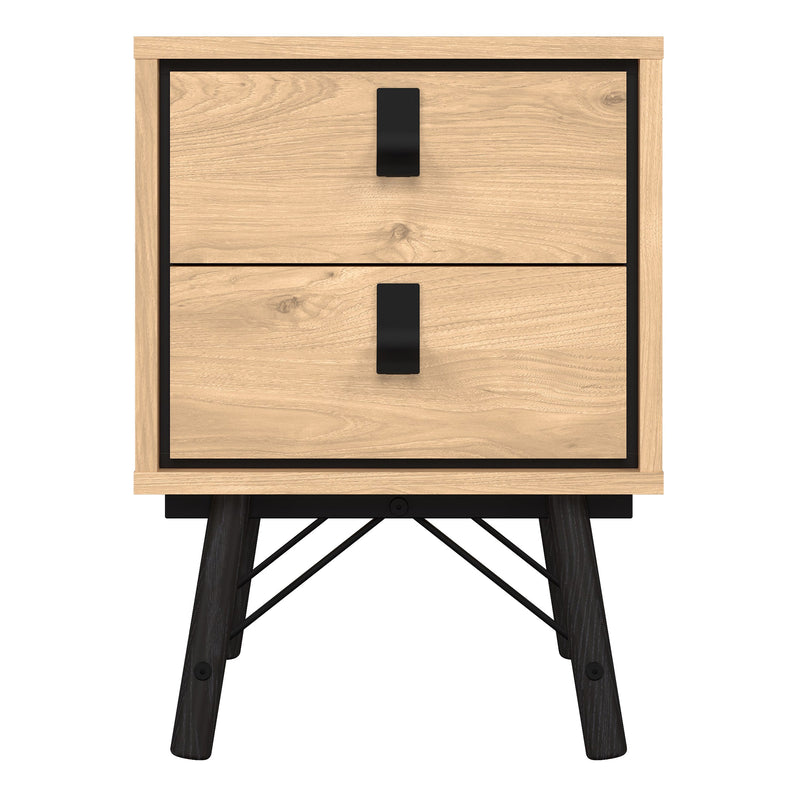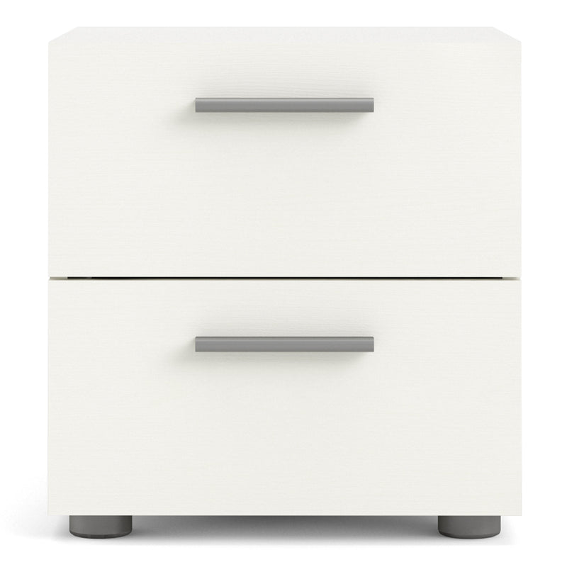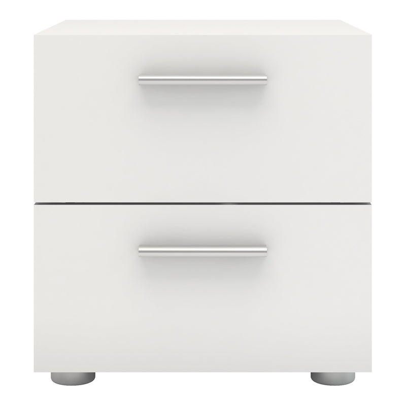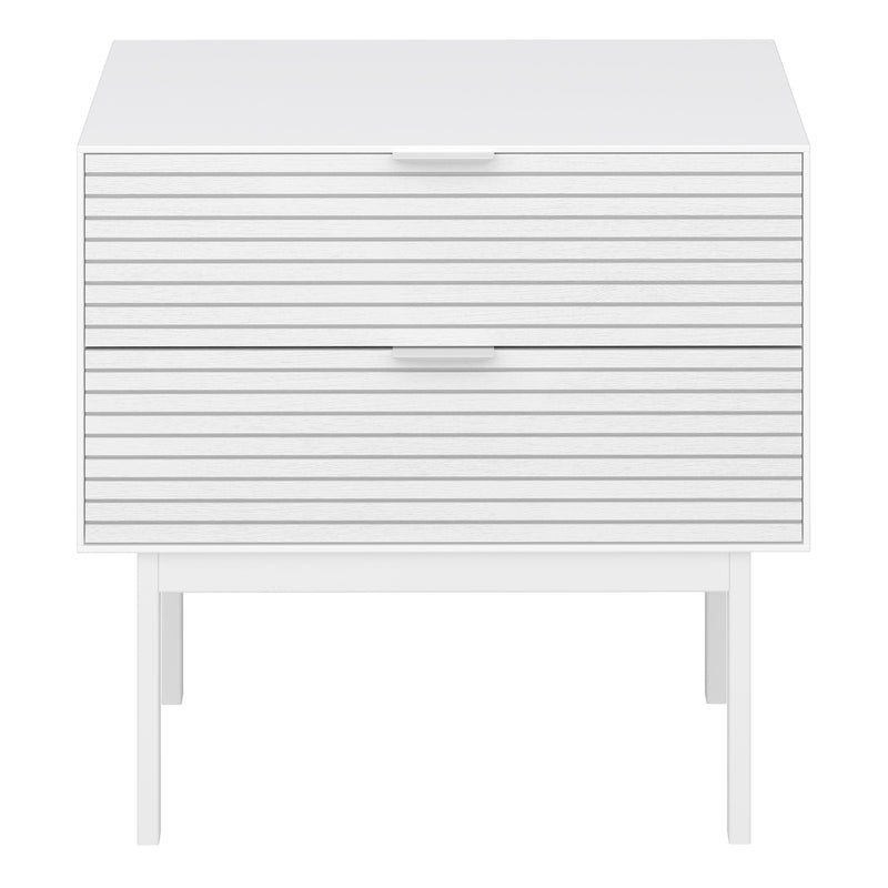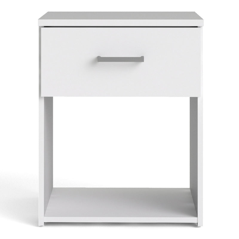 Campaign style 1 drawer bedside table with white painted finish, polished metal handle and cross frame leg