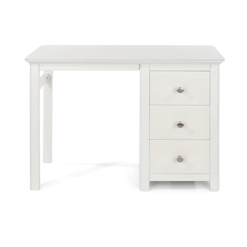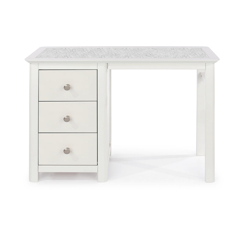 Desk/Dressing table in white with an Truffle Oak trim. Unconventional design - a proposal for the followers of the latest trends. The clever mix of scratch resistant white melamine with beautiful high gloss fronts and oak melamine trim makes this top quality collection of furniture the ideal destination for the most modern of homes, the massive range that includes many cabinets and wall units fulfils every storage and display option.