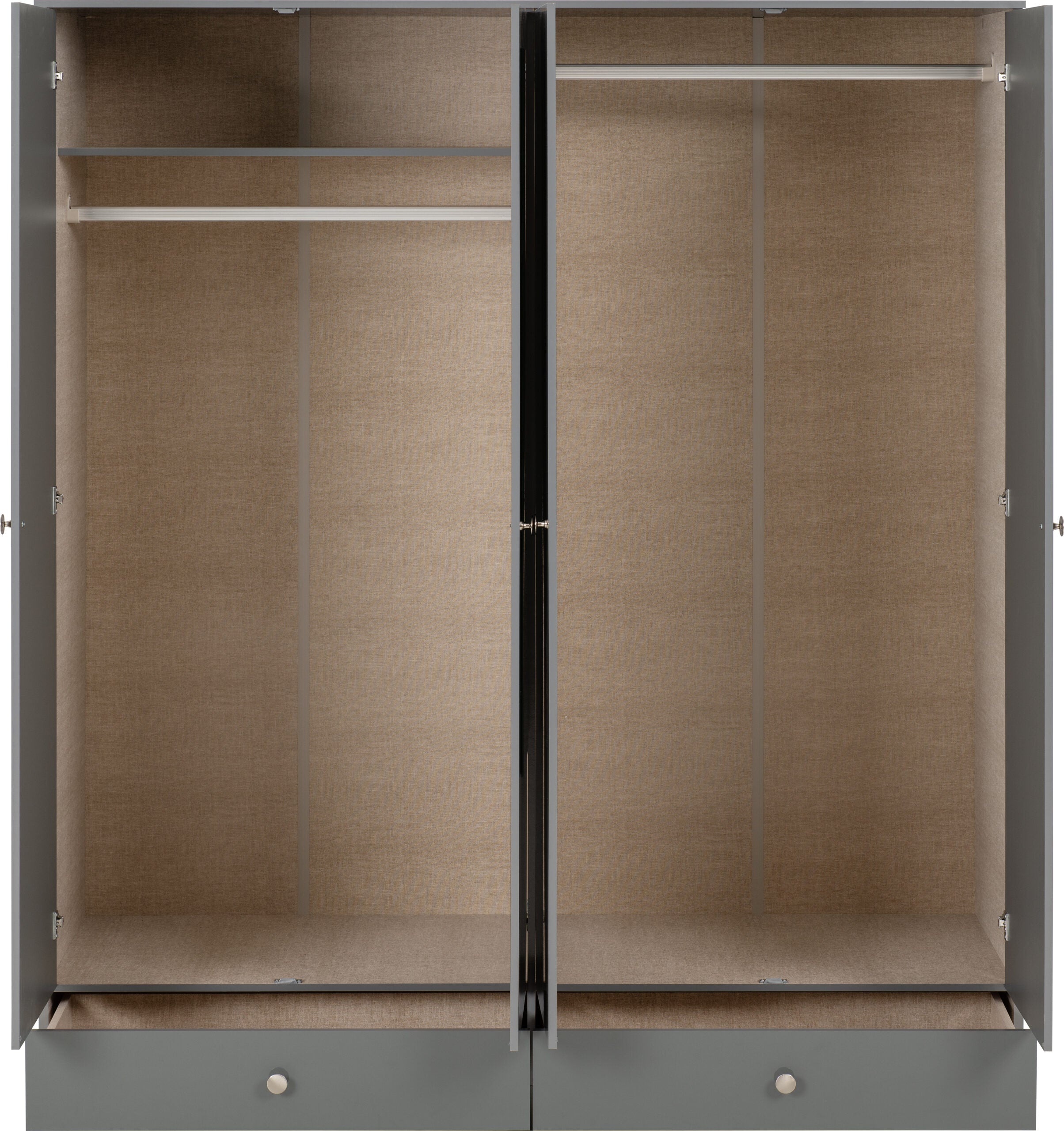 MDF, PLASTIC VENEER, MDF BACK PANEL/DRAWER BASE, METAL HANDLE, METAL HINGES, METAL DRAWER RUNNERS, METAL HANGING RAIL, PLASTIC FEET, PLASTIC BACK PANEL STRIP, MIRRORED GLASS Extra Information