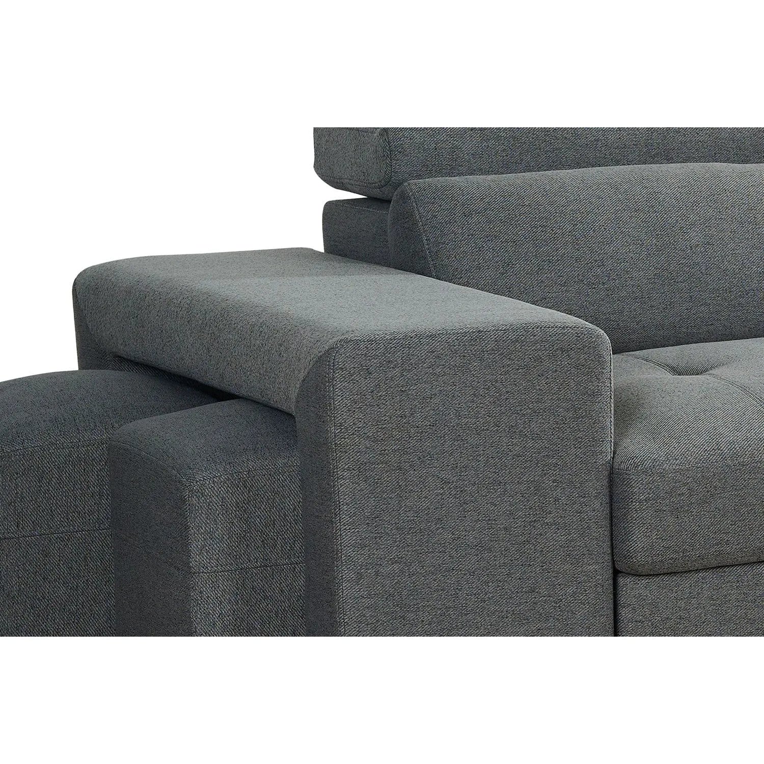 Transform your living space with our Grey Fabric Universal Corner Sofabed, a perfect blend of modern elegance and practical functionality. This stylish piece features clean lines and a spacious layout that easily converts into a cozy sleeping area for guests. Upholstered in durable fabric with plush foam-filled cushions, it promises long-lasting comfort and support. The hidden underseat storage compartment is ideal for stowing away bedding or throws, keeping your space tidy. With adjustable headrests and two included footstools that fit neatly under the arm, this versatile sofabed adapts to your needs while seamlessly complementing any interior style. Elevate your home with this chic and practical addition!