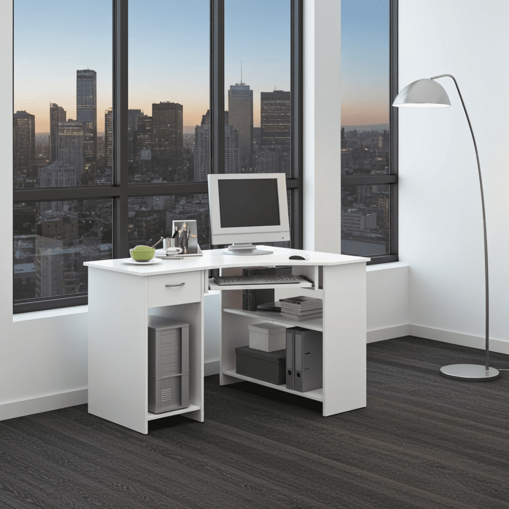 Alex White Corner Desk with Drawer and Shelves