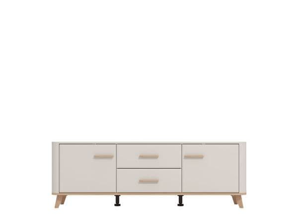 The Dariqon Cashmere and Oak Effect 154cm TV Unit brings modern elegance to your living space with its soft cashmere tones and oak effect finish. Featuring two doors and two drawers, it offers ample, organised storage while its rounded edges and tall legs add a refined, contemporary touch.