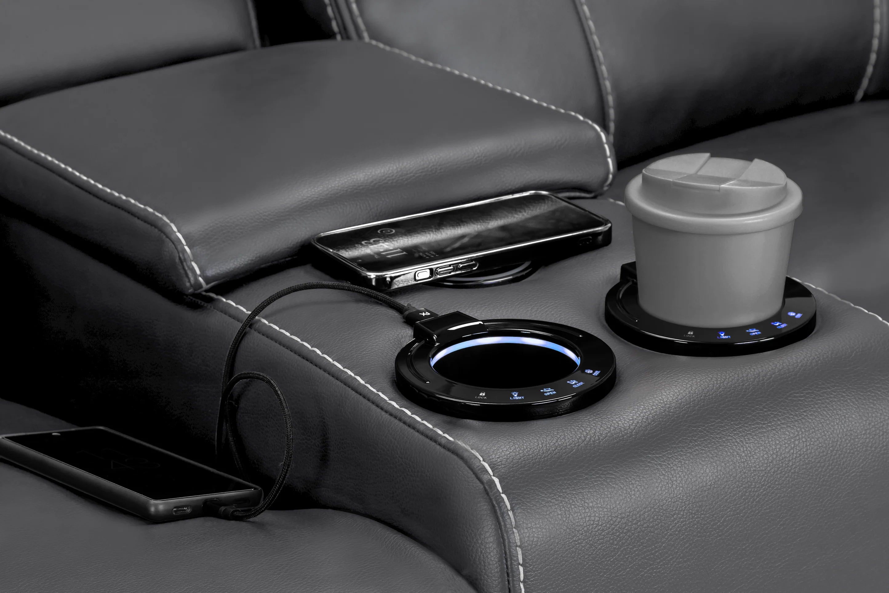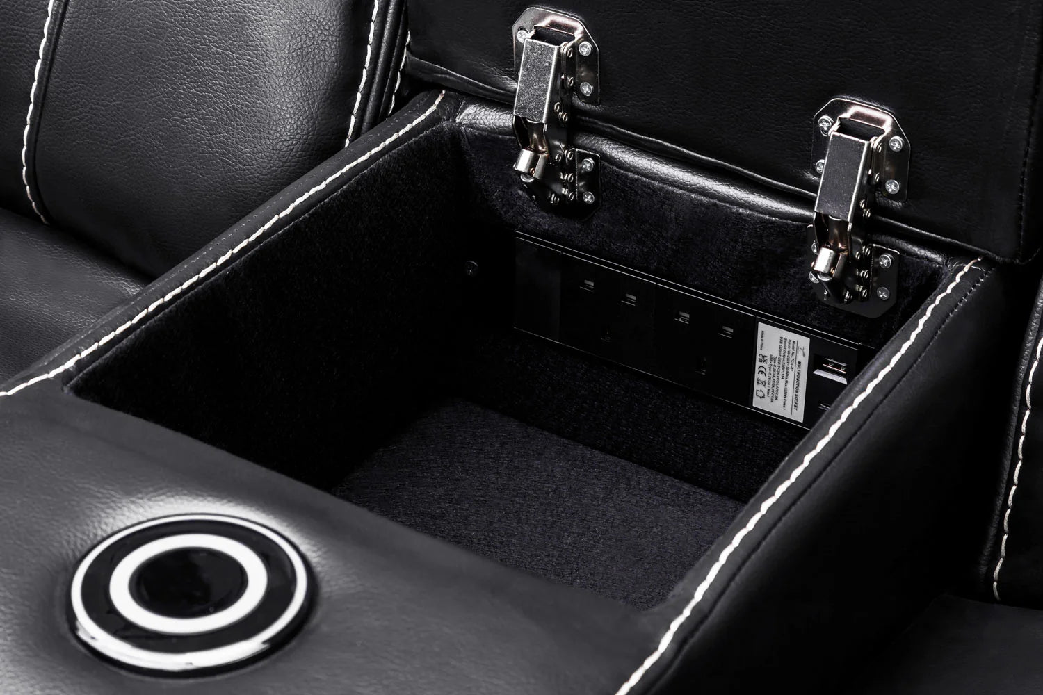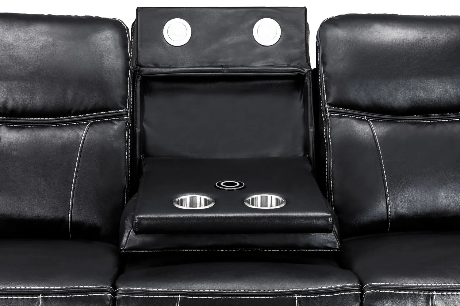 • Highlights: Reclining Function, Built-in Cup Holders, Armrest Storage Compartment, Built-in USB Ports, Leather Material Upholstery