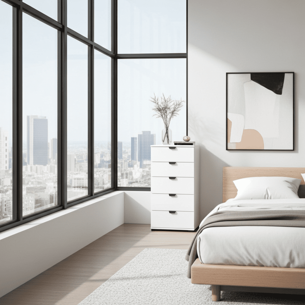 The Limone Arctic White Narrow 5 Drawer Chest offers a sleek and compact storage solution for smaller spaces. Finished in a crisp arctic white, it features five vertically stacked drawers, perfect for organising essentials. Its minimalist design adds a touch of modern elegance to any room.