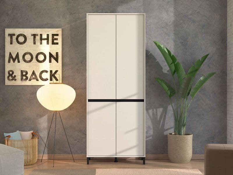 Keep your footwear neatly stored with this elegant, tall shoe cabinet in a soft cashmere taupe finish. Four doors provide easy access to eight internal shelves, holding up to 40 pairs of shoes. Crafted with durable materials for long-lasting everyday use.Ideal for larger families or those with a growing shoe collection.